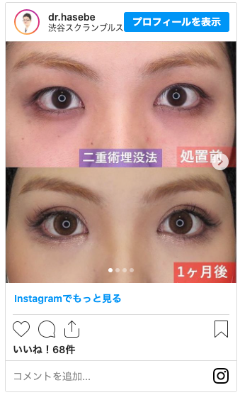 瞼に傷が残らず目を閉じてもバレません。ダウンタイムが短いのも嬉しい魅力です。