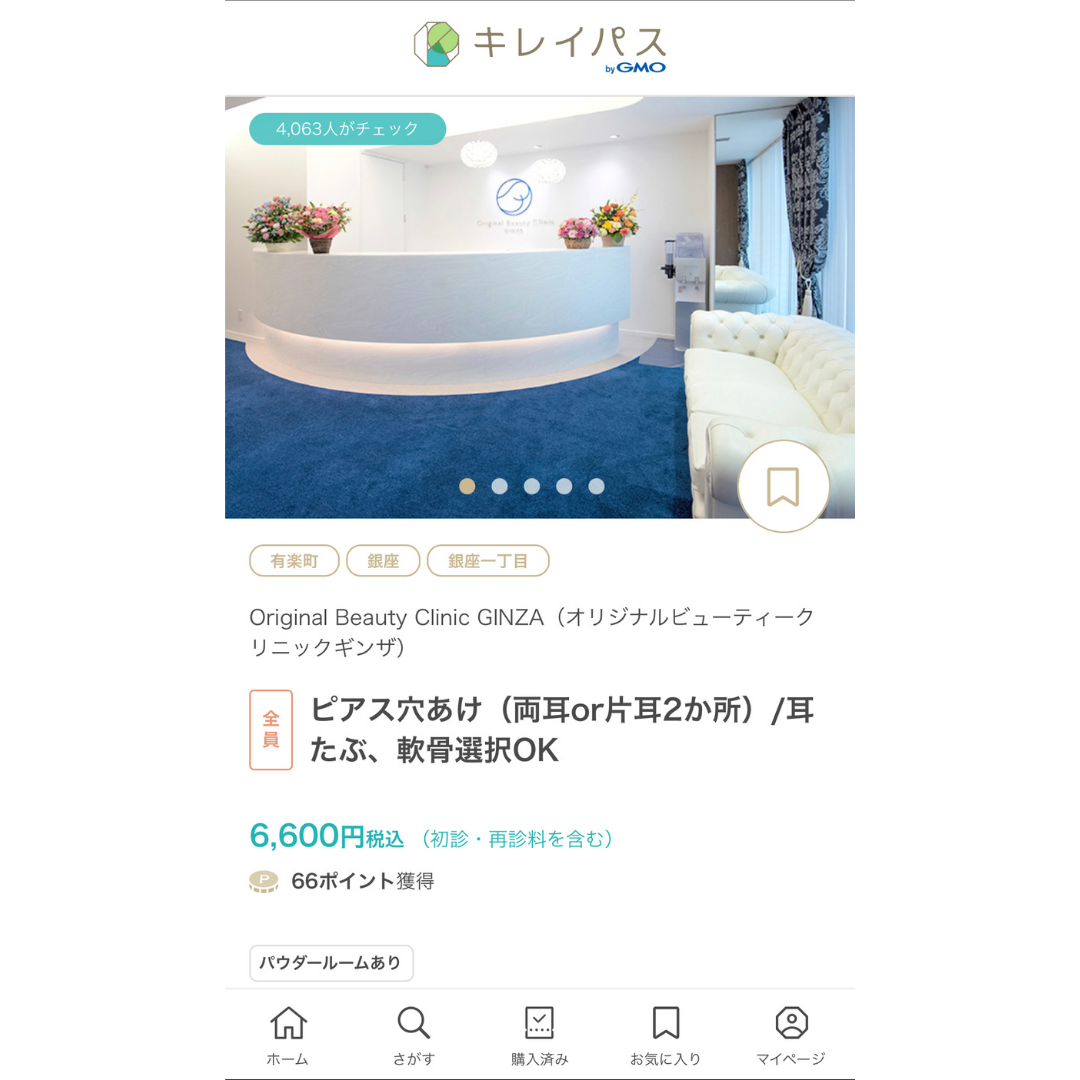 美容医療をおトクに受けられる「キレイパス」で予約すると、当サイト限定3,000円OFFクーポンの使用でピアス穴開けが実質3,600円です。銀座で最安料金なので一番おすすめです。