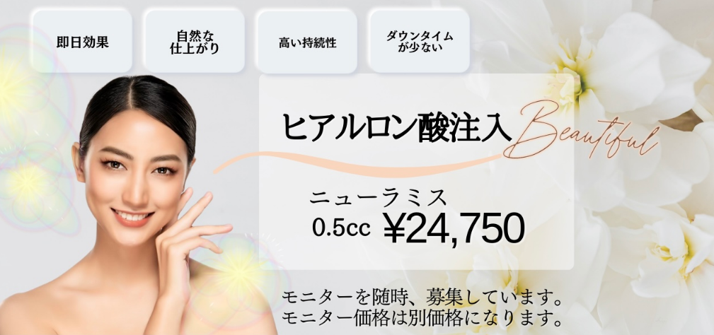 多くのヒアルロン酸施術を受けてきた私は、実績と安さの両方を誇る品川美容外科をおススメします!