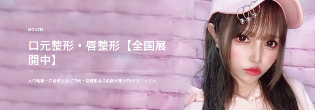 横浜TAクリニックは、口元・唇整形の名医が在籍しています。インスタグラマーや有名モデルがTAクリニックの医師を指名することも珍しくありません。動画映え・写真映えする唇が欲しいなら、TAクリニック一択です。