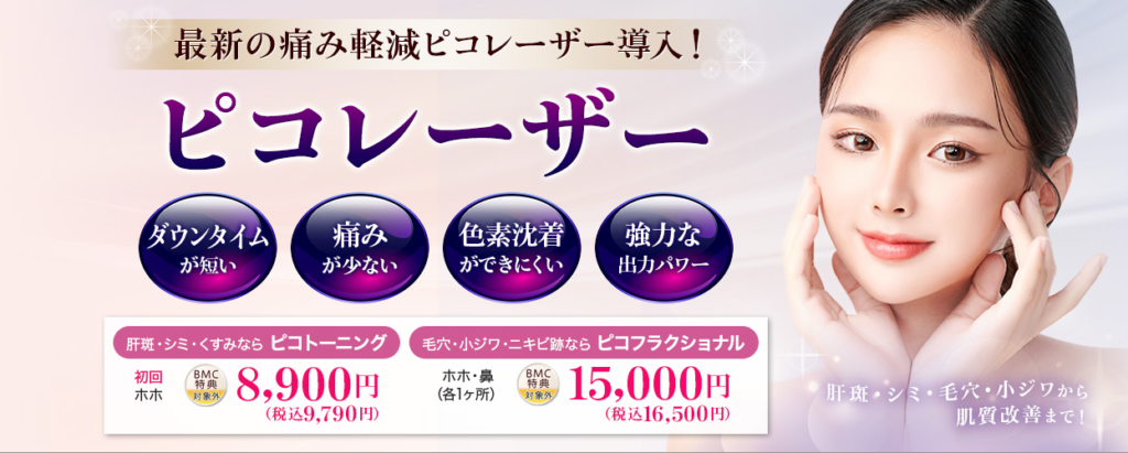 ▶おすすめの病院:品川美容外科|ピコトーニング(税込9,790円〜※地域最安)