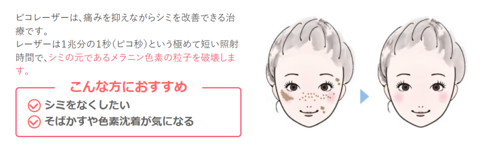 TCB東京中央美容外科では、ピコレーザーを用いて気になるシミに一気にアプローチができます!