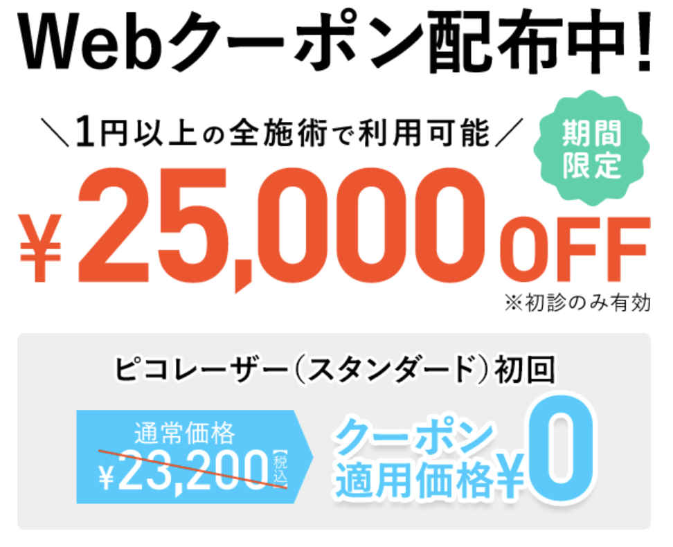 ピコレーザーライト初回9,800円が、今ならクーポン利用で0円で施術を受けられます!